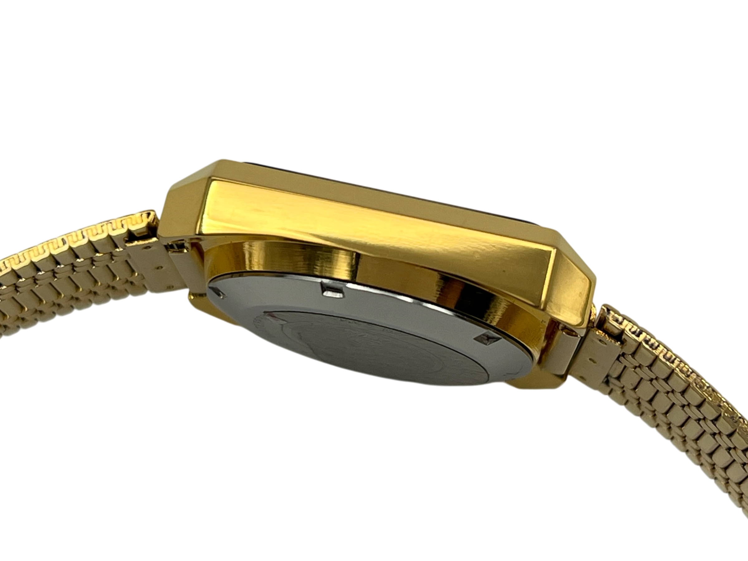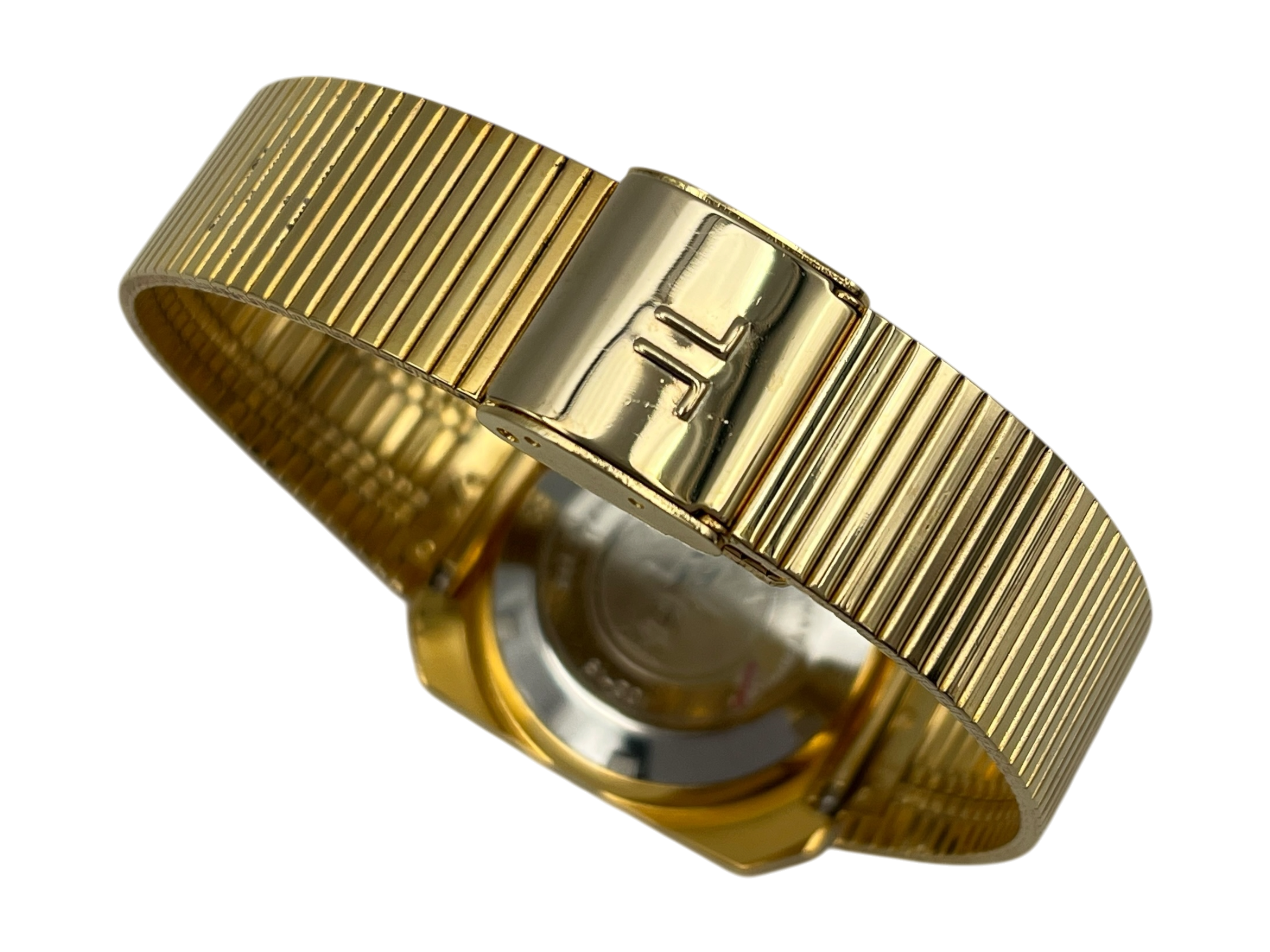 Lieben Sie Uhren, die sofort ins Auge fallen? Die Loreena Automatik Ref. 81-301 vereint den Charme der 1980er Jahre mit einem Hauch Extravaganz. Das goldfarbene Gehäuse harmoniert perfekt mit dem elegant gestalteten Zifferblatt, das durch funkelnde Zirkonia-Indizes stilvoll akzentuiert wird. Besonders spannend: die Day-Date Anzeige in Englisch und Arabisch. Mit einer Gehäusebreite von ca. 32 mm trägt sich die Uhr angenehm kompakt und unterstreicht einen klassischen, zeitlosen Stil.